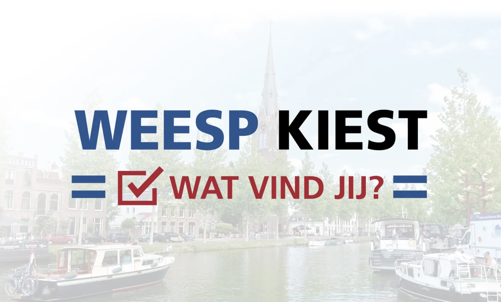 We ontdekten dat sommige waarden best vaag waren. We willen het historisch karakter versterken. Hoe doe je dat? Moet de Achtergracht weer open? Willen we dat? Serieus? Of was dat niet al lang een gepasseerd station? En soms staan er in die kernwaarden ook tegenstrijdige zaken. We willen het open landschap behouden, maar ook betaalbare woningen bouwen. Waar kan dat anders op grote schaal dan rondom Aetsveld? Met die kernwaarden in ons achterhoofd hebben we geprobeerd om een aantal prikkelende stellingen te formuleren waarmee we het verkiezingsdebat willen aanzwengelen. Zoals bij het eerste breed beraad over veiligheid houden we eerst een online peiling op de site HalloWeesp. De peiling loopt tot donderdag 5 maart.